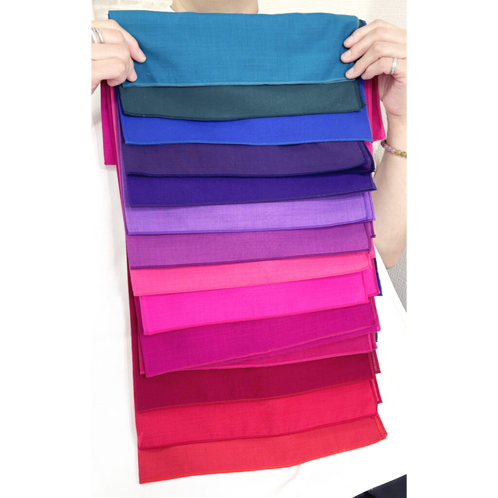 叔母様はブルベ冬さんですが、青か赤かどちらがよりベストか?というと断然「赤」の方でして、赤が混ざったショッキングピンクや紫もバッチリお似合いで豊富な結果になりましたね✨