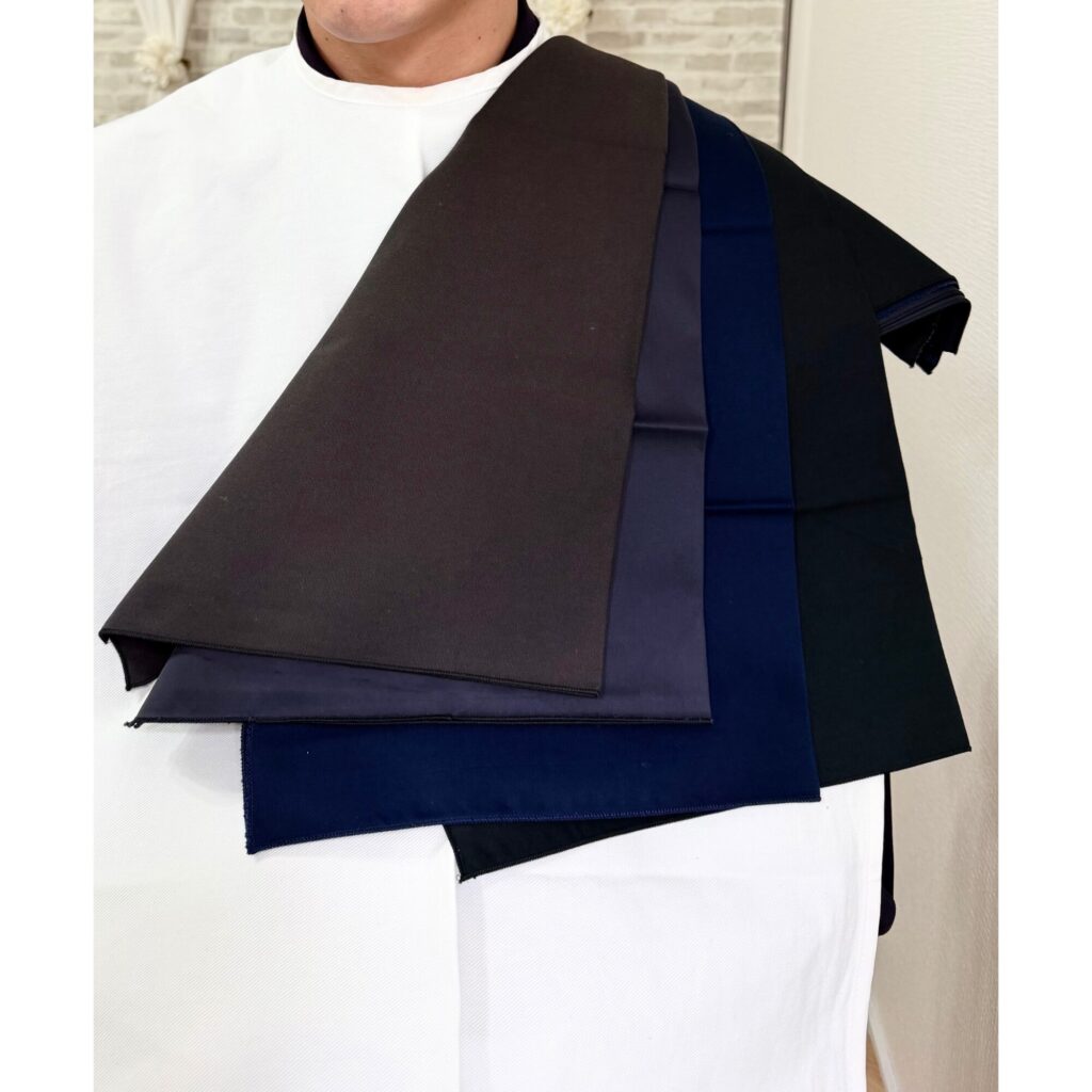 思った以上にダークな色でも明るく顔から浮いてみえてしまい、メンズ用ドレープの細いストライプですらも白っぽくくすんで見えて「黒無地一択」の結論でしたね!